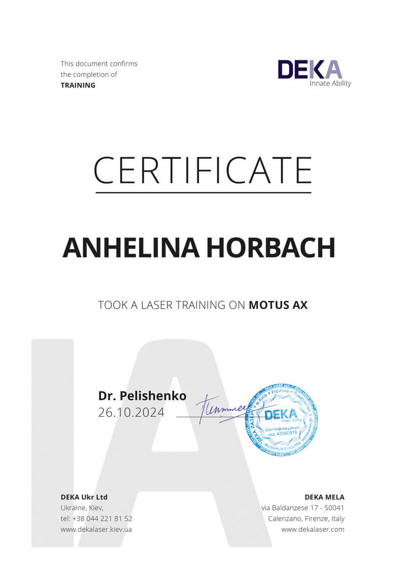 - Курс лазерної епіляції від італійської компанії DEKA на апараті MOTUS AX – олександритовий лазер.