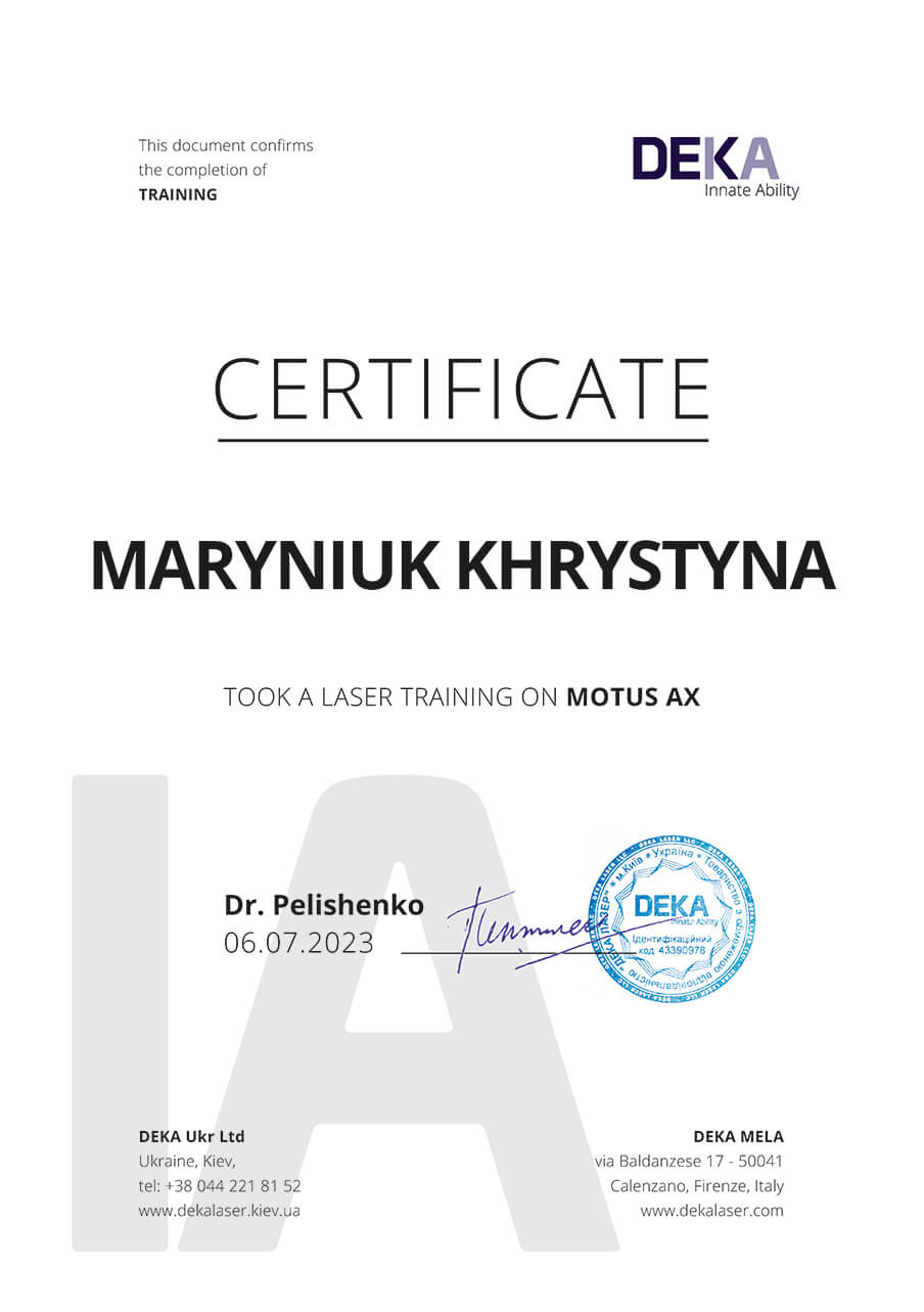 - Курс лазерної динамічної епіляції від італійської компанії DEKA на апараті MOTUS AX – олександритовий лазер за технологією MOVEO