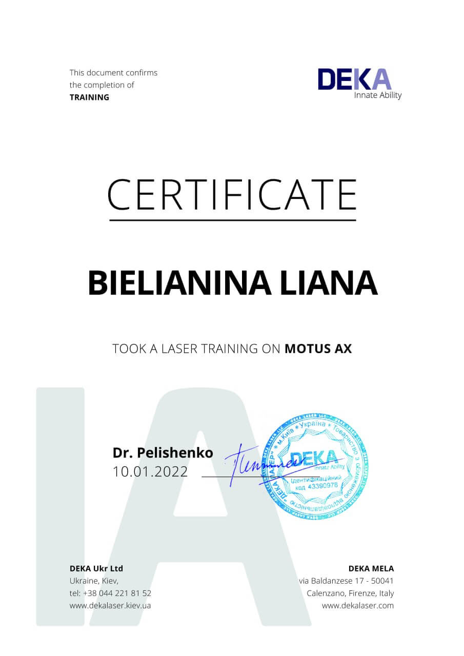 - Курс лазерної епіляції від італійської компаціі DEKA на апараті MOTUS AX – олександритовий лазер