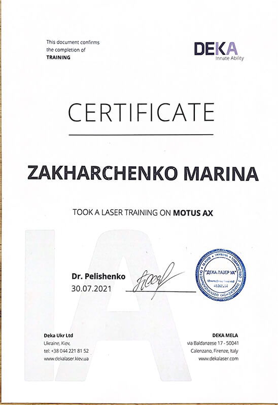 - Курс лазерної епіляції від італійської компаціі DEKA на апараті MOTUS AX – олександритовий лазер.