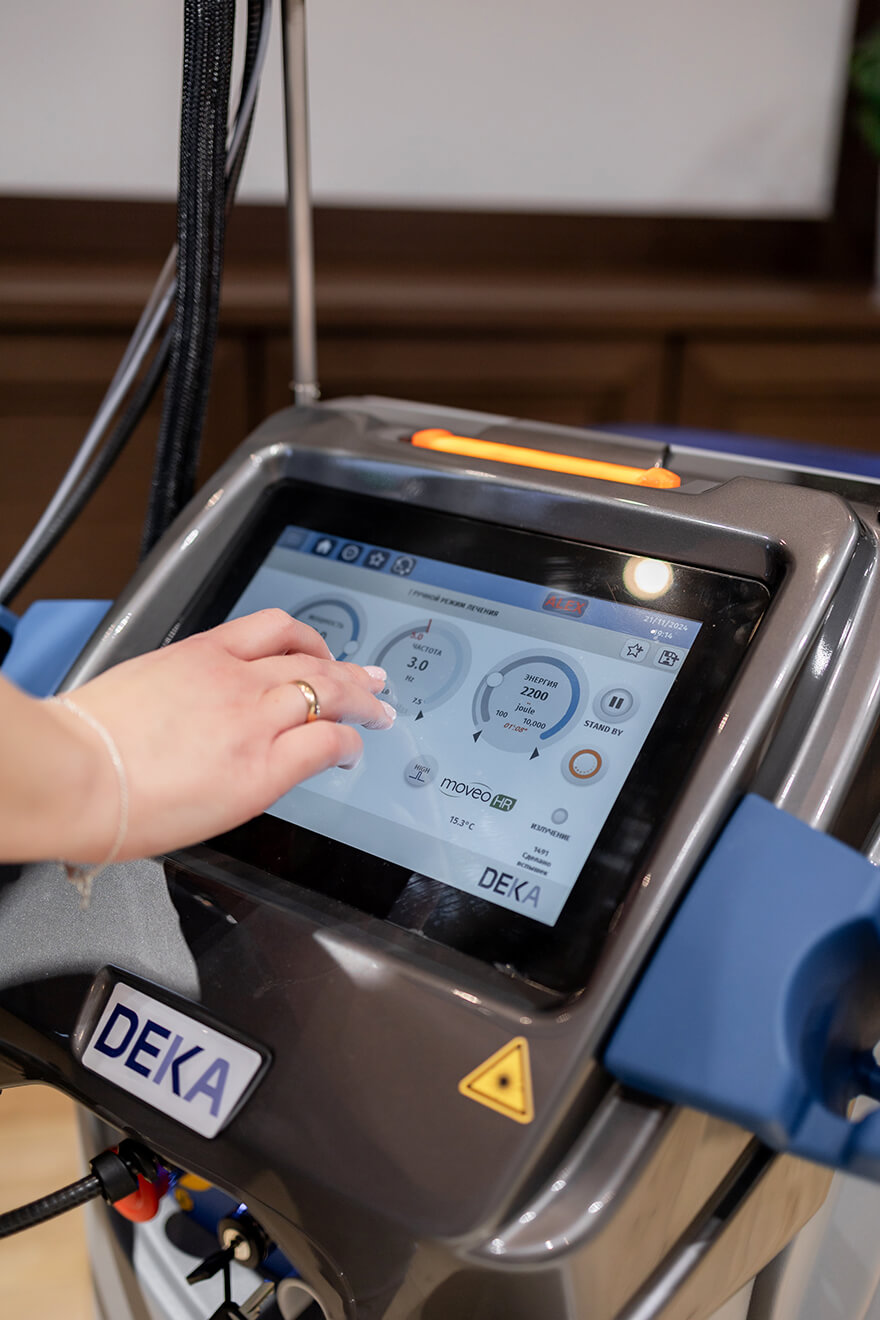 - Сучасні технології. Ми використовуємо лазер Motus AX з технологією Moveo, яка забезпечує ефективність, безпеку та комфорт.